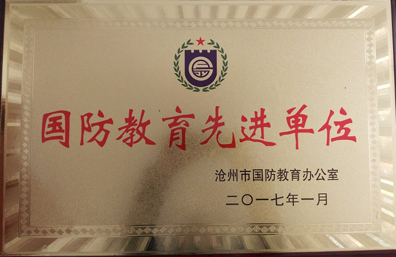 2016年年底,沧州市国防教育办公室在全市开展全民国防教育先进单位和先进个人评选活动,我校被授予“国防教育先进单位”荣誉称号。 近年来,我校在校党委的领导下,坚持全面贯彻落实中央和教育部关于加强和改进国防教...