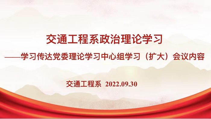 为持续强化理论武装,巩固政治理论学习成果,9月30日下午,交通工程系召开专题会议,学习传达党委理论学习中心组学习(扩大)会议精神,切实提高政治站位,筑牢理想信念根基。交通工程系全系教职工参加了会议。 会上...