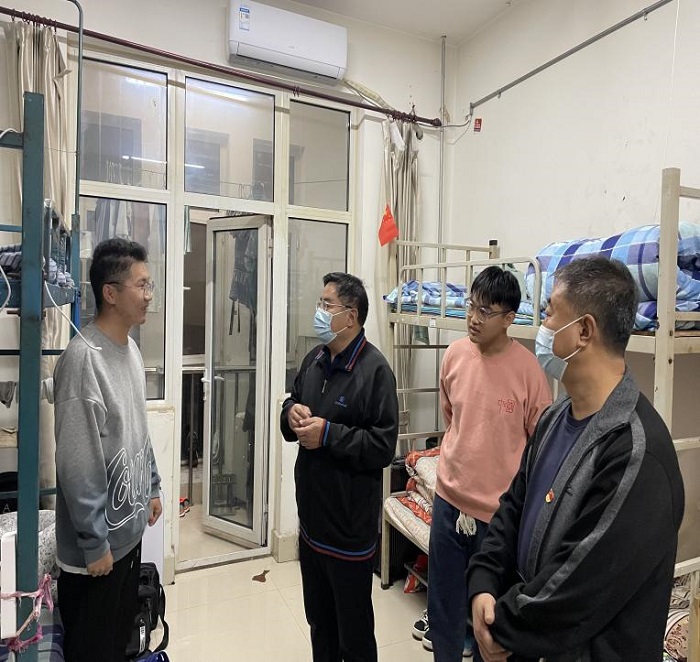 在党的二十大胜利召开之际,我院党委书记陈进杰在水利工程系党总支书记陈元才、辅导员代志雪老师的陪同下深入包联班级学生宿舍,开展走访活动,与水电2103、2104班的同学们进行了亲切交流。 陈书记走进学生宿舍,亲...