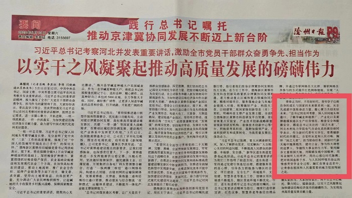 【编者按】5月10日至12日,习近平总书记亲临河北考察并召开高标准高质量推进雄安新区建设座谈会、深入推进京津冀协同发展座谈会,充分体现了习近平总书记对河北人民的时时牵挂,对河北、对沧州的深情厚爱。特别是在沧...