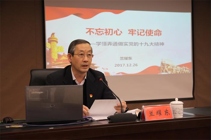 12月26日下午,在弘文守正楼九楼报告厅,我校党委书记兰耀东为广大党员干部作主题为“不忘初心 牢记使命——学懂弄通做实党的十九大精神”辅导报告。校领导、副科级以上干部、各党总支、直属支部书记、各支部书记、委...