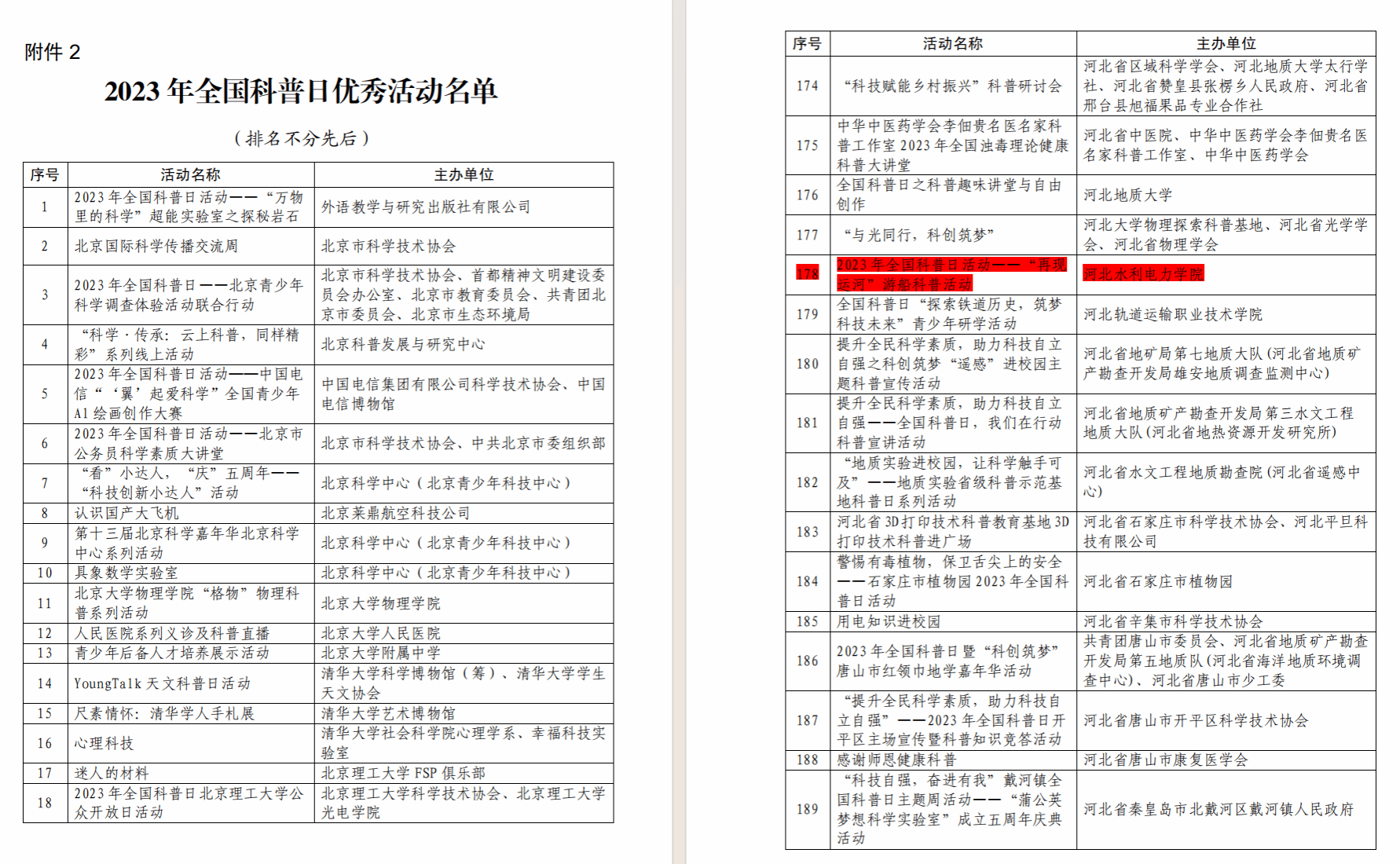 近日,中国科协办公厅发布《关于对2023年全国科普日有关组织单位和活动予以表扬的通知》(科协办函普字〔2023〕102号),对2023年全国科普日有关组织单位和活动进行工作表扬,我校榜上有名!2023年,我校坚持以习近平新时代中国特色社会主义思想为指导,全面贯彻落实党的二十大精神,积极主动作为、调动各方面力量开展科普活动,努力构建全社会参与、全民共享的社会化科普大格局。在全国科普日活动期间,我校充分发挥水利电力特色,结合科研平台人才和资源优势积极组织开展主题鲜明的科普日系列活动共4场次,...