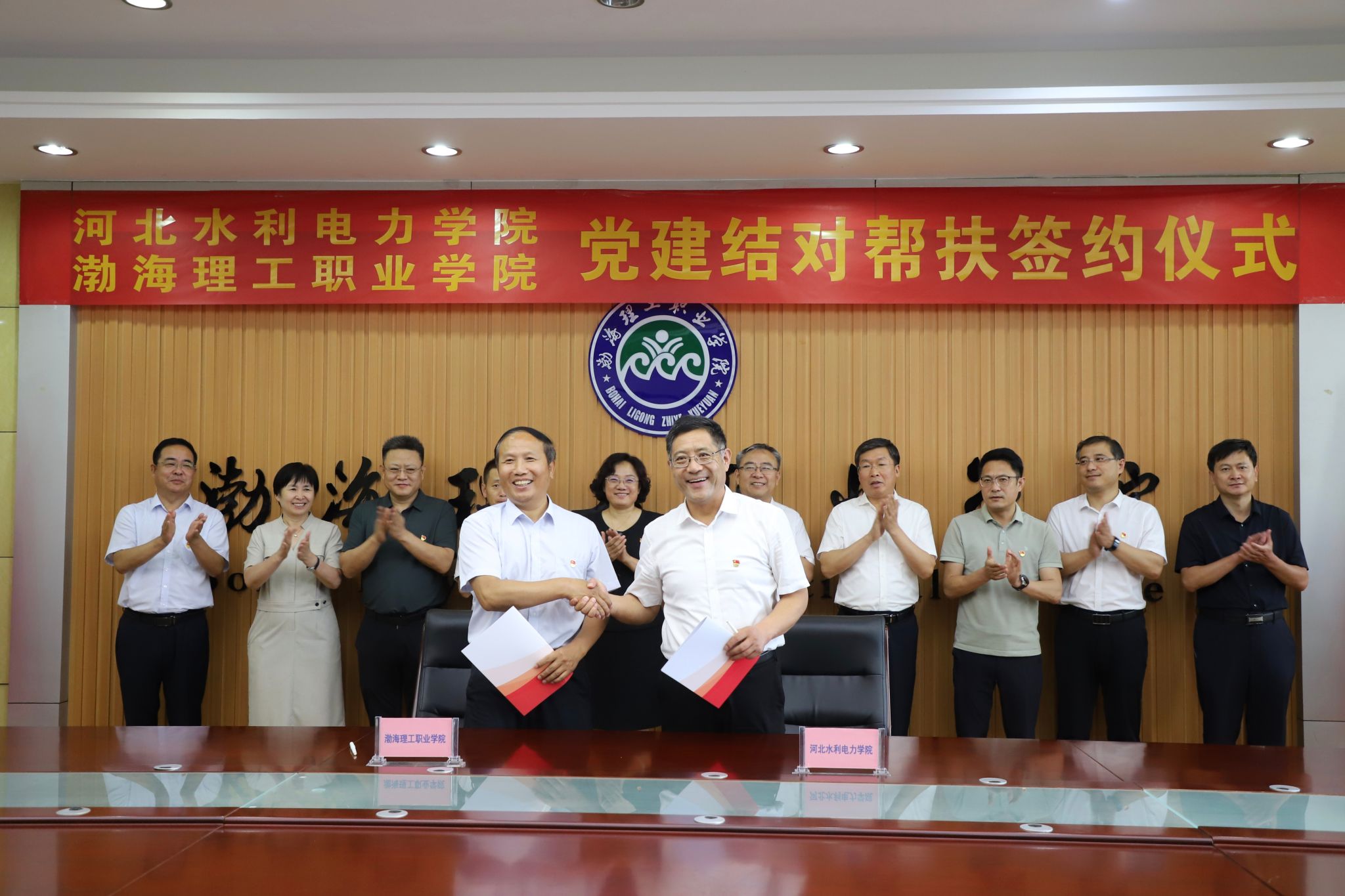 6月26日下午,我校与渤海理工职业学院举行党建结对帮扶签约仪式。省委教育工委副书记、省教育厅党组成员王俊华,省教育厅党建处处长宋吉国,沧州市委教育工委书记、教育局局长吕荣锋,沧州市委教育工委副书记代砚广,渤海新区黄骅市副市长张桂云,渤海新区黄骅市教育局局长何寿彪出席会议;我校党委书记张效松,党委副书记、校长王滨,副校长于振海、副校长杨凯以及渤海理工职业学院党委副书记、院长张玉军,党委书记卢振启等院领导参加了签约仪式。...