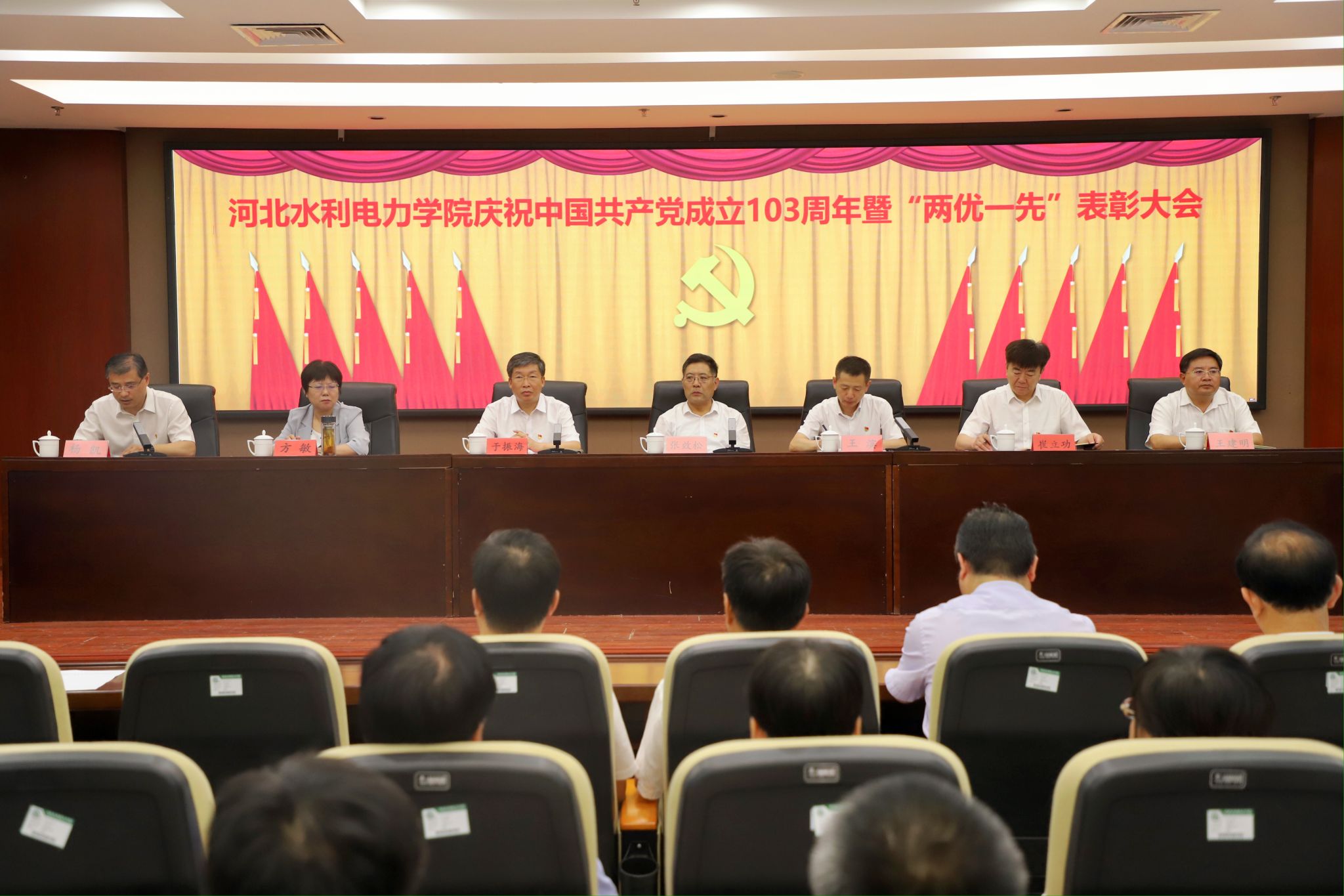 6月28日上午,我校庆祝中国共产党成立103周年暨“两优一先”表彰大会在弘文守正楼九楼报告厅隆重举行,学校领导班子全体成员出席会议,正处级干部、受表彰人员和党员代表参加会议。会议由党委副书记、校长王滨主持。大会在雄壮的国歌声中拉开序幕。副校长杨凯宣读了《关于2024年“星级支部”的表彰决定》,副校长于振海宣读了《关于2024年优秀共产党员、优秀党务工作者和先进基层党组织的表彰决定》,对机关党总支四支部等6个四星级党支部、...