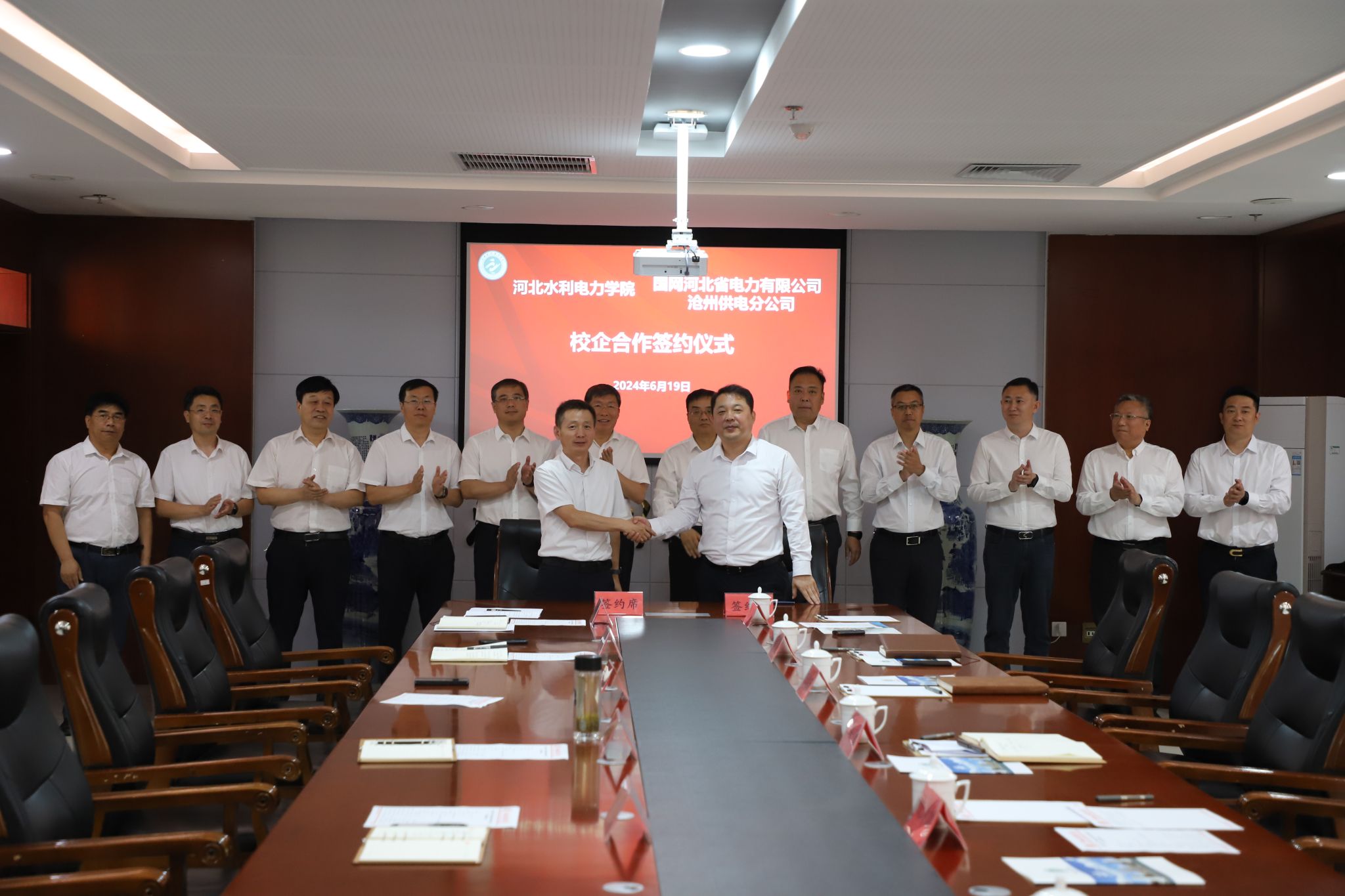 近日,我校与国网河北省电力有限公司沧州供电分公司在弘文守正楼1102会议室举行了校企合作签约仪式。国网河北省电力有限公司沧州供电分公司党委书记、副总经理李春晓,党委委员、副总经理纪剑波,党委委员、副总经理张葆青,党委委员、总工程师苗靓;学校党委副书记、校长王滨,副校长于振海,副校长杨凯等出席了签约仪式。签约仪式由副校长于振海主持。签约仪式前,党委书记张效松、副校长于振海陪同来宾参观了校史馆,重温了学校建校以来的发展历程。...