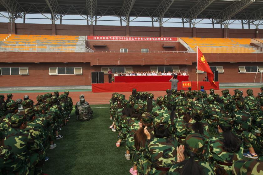 9月16日上午9:00,体育场内旌旗招展,军歌嘹亮,我校在这里隆重举行2016级新生开学典礼暨军训总结表彰大会。校领导及有关系、部、处、室负责人出席大会。大会由校长办公室主任葛洪伟主持。 校长韩会玲在大会上讲话,...