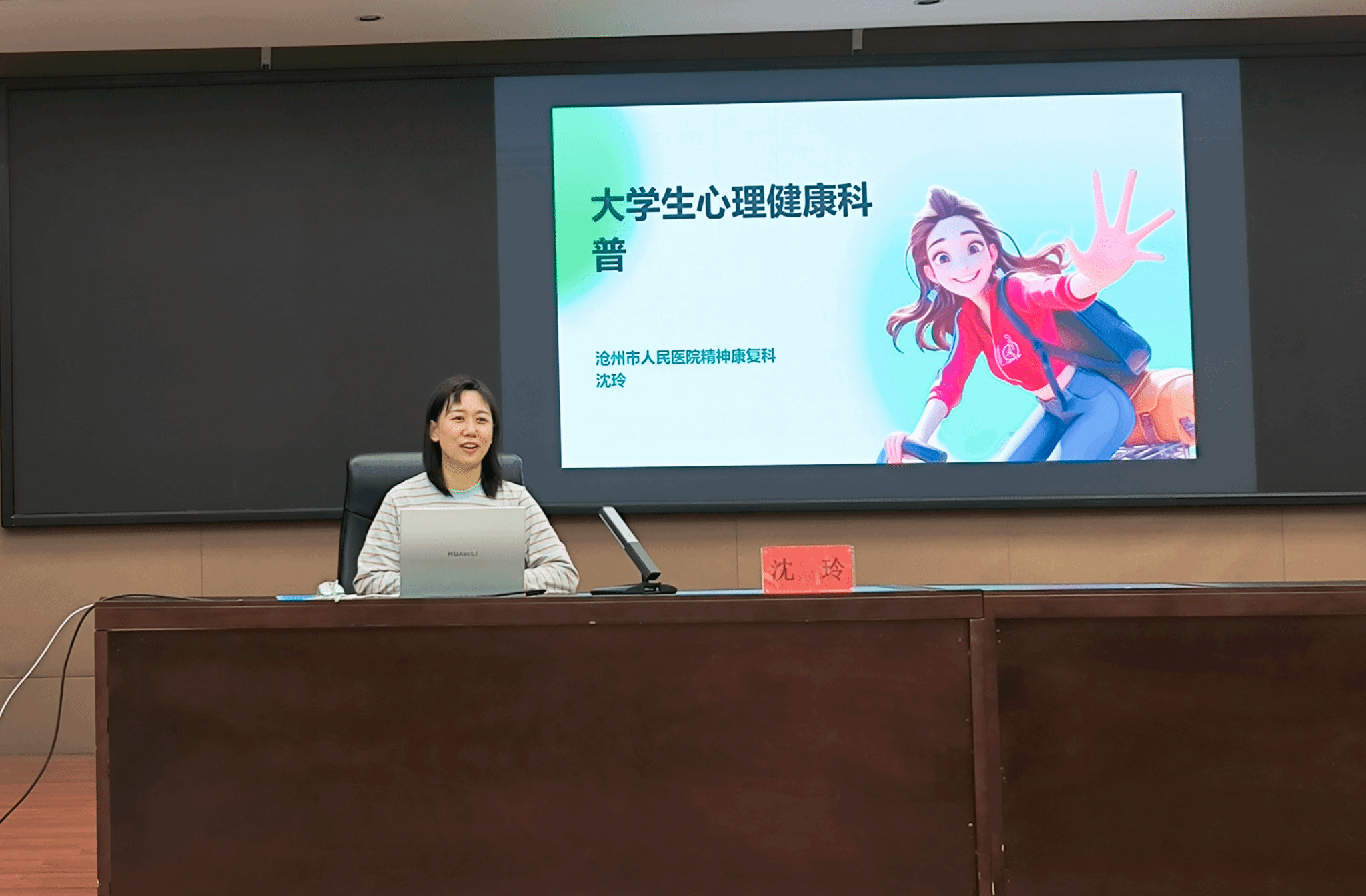 为深入推进我校心理健康教育工作育人成效,宣传、普及、深化心理健康与精神卫生相关知识,我校围绕2024年10月10日世界精神卫生日“共建共治共享,同心健心安心”主题,联合沧州市人民医院开展了“大学生心理健康与精神卫生”主题讲座,各系2024级新生及心理健康教师共200余人参加。本次讲座由沧州市人民医院精神康复科副主任沈玲讲授,我校学生处副处长路鹏主持。学生处副处长路鹏主持讲座讲座中,沈玲对心理健康的定义作出了深入科学的解读,...