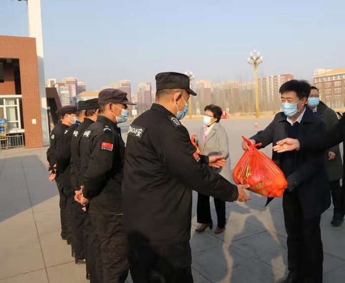 2月10日上午,在新春佳节即将到来之际,副校长崔立功、纪委书记方敏带领校工会、党政办公室、后勤管理处、安全稳定处等职能部门负责人,走访慰问了学校春节期间坚守岗位的工作人员,并对校园封闭管理情况进行了实地查看。