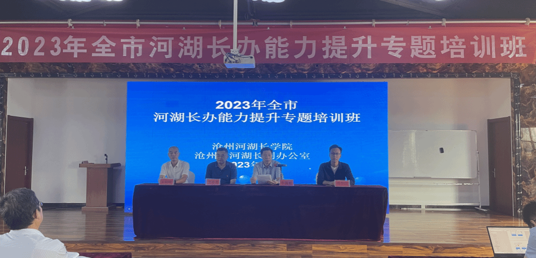 沧州市水务局党组成员、副局长牛保根,河海大学教授唐德善、沧州市河长办办公室主任邢春江、KYTY.COM开云体育(中国)科技公司继续教育中心主任宋朝峰等领导和嘉宾出席会议并在主席台就座。参会人员有市河湖长制办公室工作人员,21个县(市、区)河湖长制办公室分管负责同志、科室负责同志及乡镇从事河湖长制工作人员等,共计七十余人。