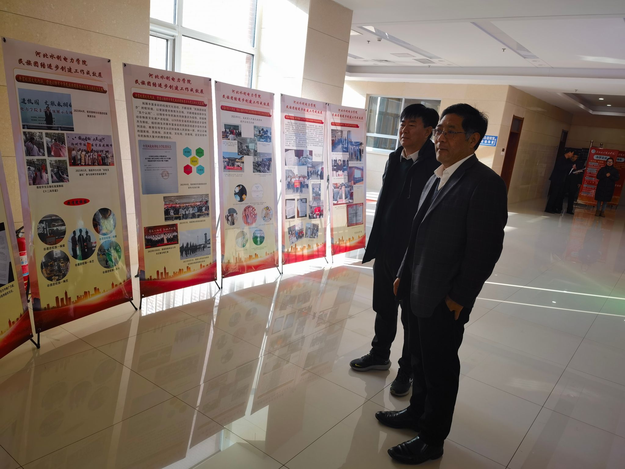 在调研中,张书记和崔校长参观了我校民族团结进步工作成效展,详细了解各民主党派、无党派人士和党外知识分子“凝心铸魂强根基、团结奋进新征程”主题教育开展情况以及党外知识分子联谊会建设情况,并围绕党外人士之家活动室建设、学习教育培训等提出意见建议。