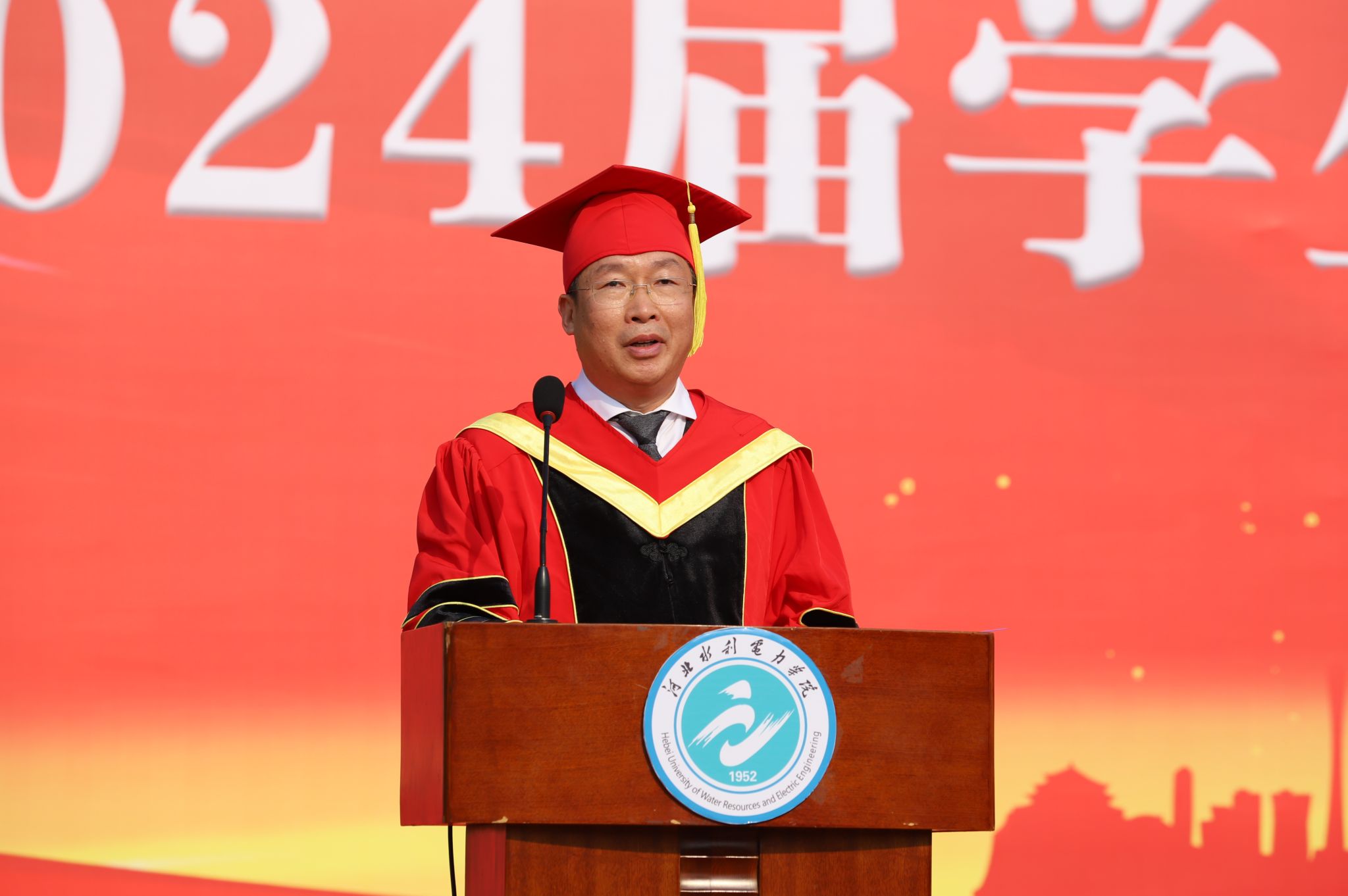 机械工程系机械设计制造及其自动化专业2004班史开红同学代表全体毕业生发言,既回顾了自己在大学里的成长历程和收获,也表达了对母校、老师和同学们的感激之情和美好祝愿,并带领全体毕业生进行了宣誓。电气自动化系自动化2303班张瑞鹤同学代表全体在校生发言,表达了对毕业生的祝福和敬意及对自己未来的憧憬和信心。河北省第二批高校“双带头人”教师党支部书记工作室负责人、土木工程系张云老师作为教师代表发言,深情表达了对同学们的不舍和祝福,希望同学们能够珍惜师生情谊,在今后的人生道路上不断学习,为社会做出自己的贡献。学校1997届电气工程系电力工程专业毕业生国网沧州供电公司副总经理、工会主席刘彦升同志作为校友代表发言,对学校的高速跨越式发展感到高兴和骄傲,并给学弟学妹们送上了美好祝福。