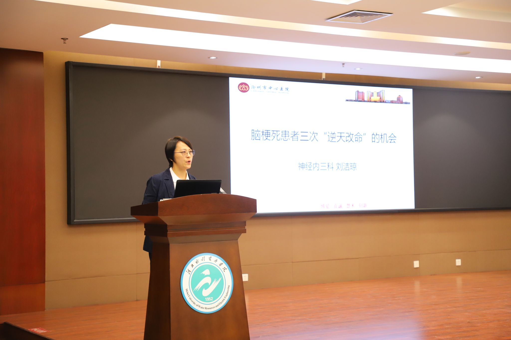 在活动中,宣讲团成员对高发疾病的脑卒中早预防、早发现、早治疗等科普知识进行宣讲:神经血管介入科洪震医生以《卒中的识别与救治》为题,以深入浅出的方式向师生们介绍了卒中的定义、分类、症状识别及紧急救治措施等基础知识;神经免疫、中枢神经系统感染二科刘洁琼医生以《脑梗死患者三次“逆天改命”的机会》为题,分享了脑梗死患者的救治经验和故事。