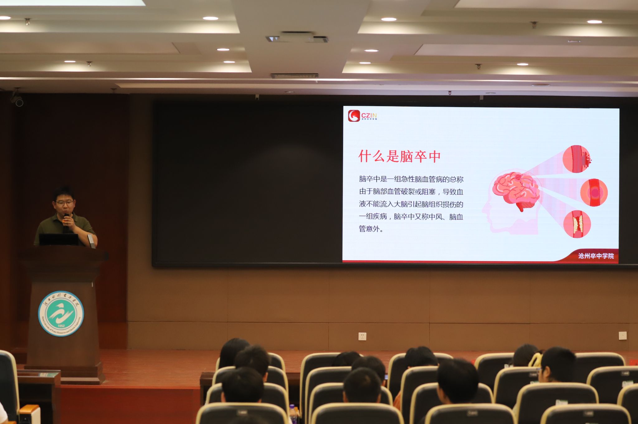 “健康中国 中风识别”行动是由国家卫健委“加强脑卒中防治工作减少百万残疾工程”专家委员会联合健康报、中国卒中专科联盟等相关单位和社会各界力量共同发起,主要针对脑卒中防治的重要因素和关键环节,通过组建专业的科普宣讲团,在专业医护人员的指导下,开展卒中的识别和防治知识的普及,从而动员政府、社会、家庭和个人协同发力,力争让更多民众具备中风识别能力,最终实现降低卒中的发病、致残、死亡等工作目标。为此,沧州市中心医院专门组建了“狮城青年医师卒中宣讲团”,由中心医院神经内科、神经外科、神经血管介入科等相关科室的41位中青年业务骨干组建而成。此次宣讲既是沧州市中心医院一次健康知识的普及,更是对“健康中国 中风识别”行动在校园内的具体实践和有力推动。