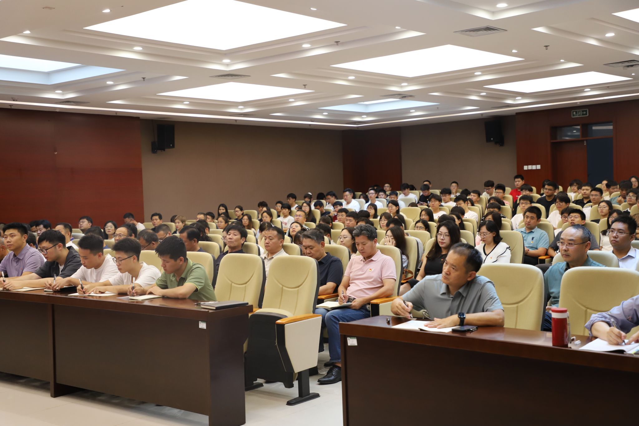 为深入学习领会党的二十届三中全会精神,汲取奋进新征程的时代伟力,8月29日下午,党委书记张效松在弘文守正楼九楼报告厅为全校师生宣讲党的二十届三中全会精神。宣讲会由党委宣传部长、统战部长于书忠主持。