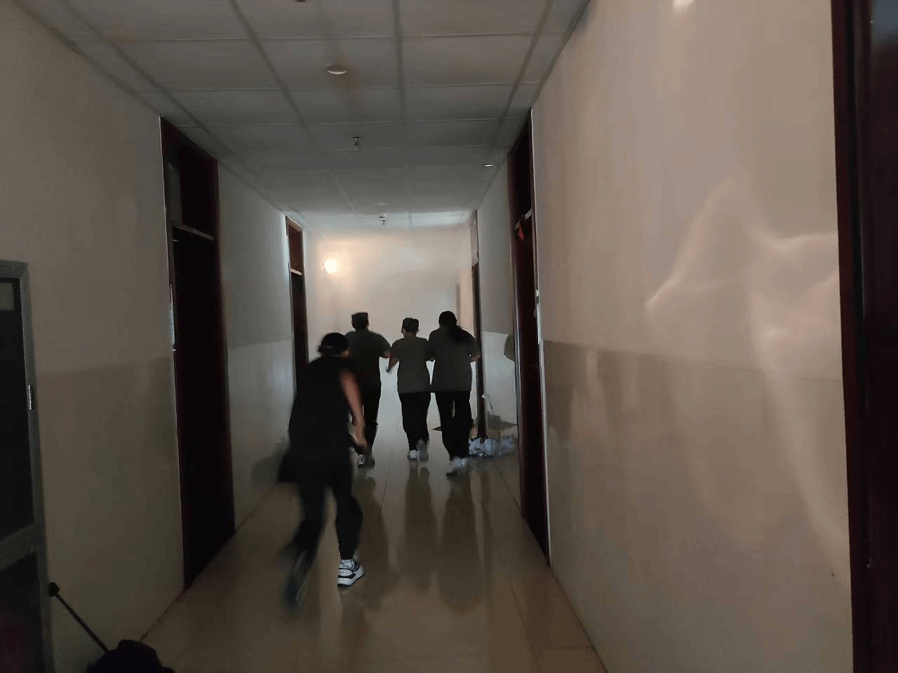 与此同时,各系党总支书记、副书记和辅导员按照演练方案在1、3、4、5、7号学生公寓组织本系新生分别开展了灭火与疏散逃生演练活动。