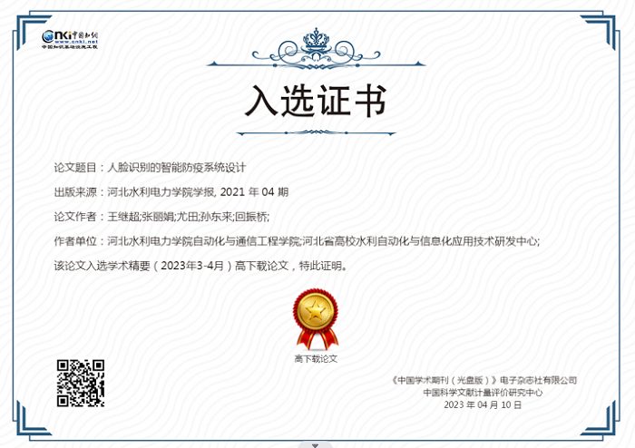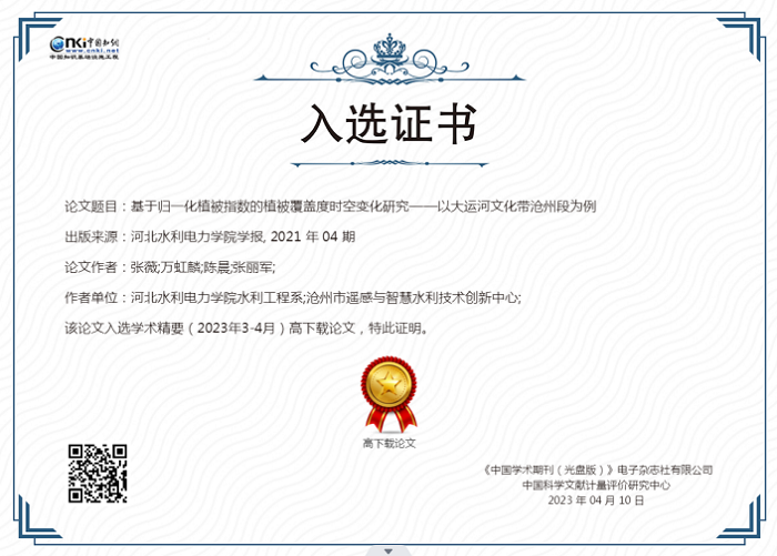 近日,中国知网《学术精要数据库》基于中国知网资源总库,首次发布近12年来高影响力论文榜单,《KYTY.COM开云体育(中国)科技公司学报》2021年第4期发表的《基于归一化植被指数的植被覆盖度时空变化研究——以大运河文化带沧州段为例》(作者:张薇、万虹麟、陈晨、张丽军)、《人脸识别的智能防疫系统设计》(作者:王继超、张丽娟、尤田、孙东来、回振桥)2篇论文入选。
