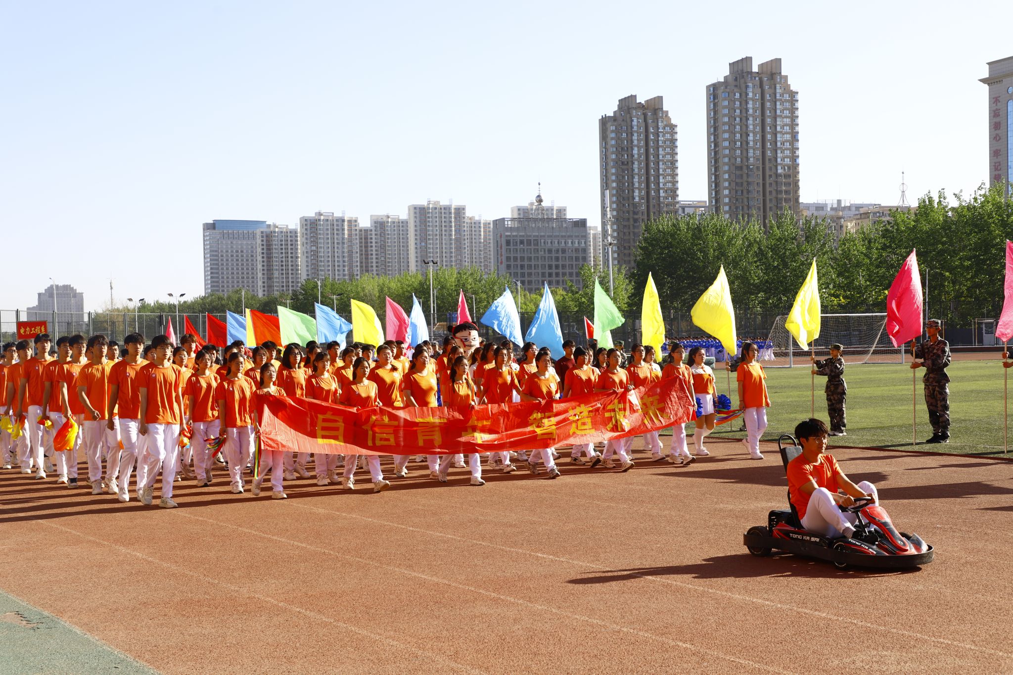 春潮涌动催奋进,活力飞扬正青春。4月24日,我校在体育场举办第七届体育运动会。本届运动会由体育教学部承办、校团委协办,近千名运动员同场竞技。