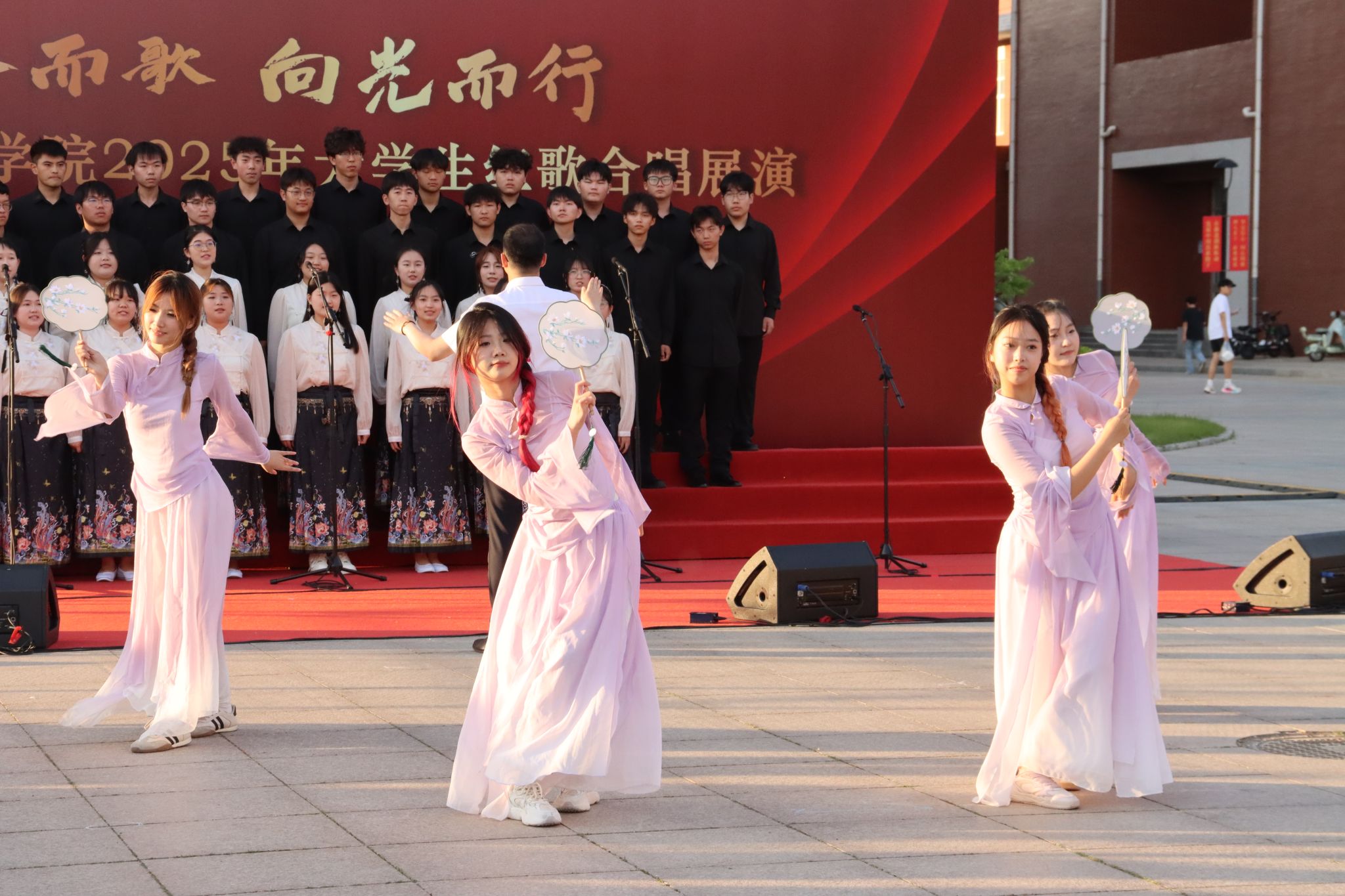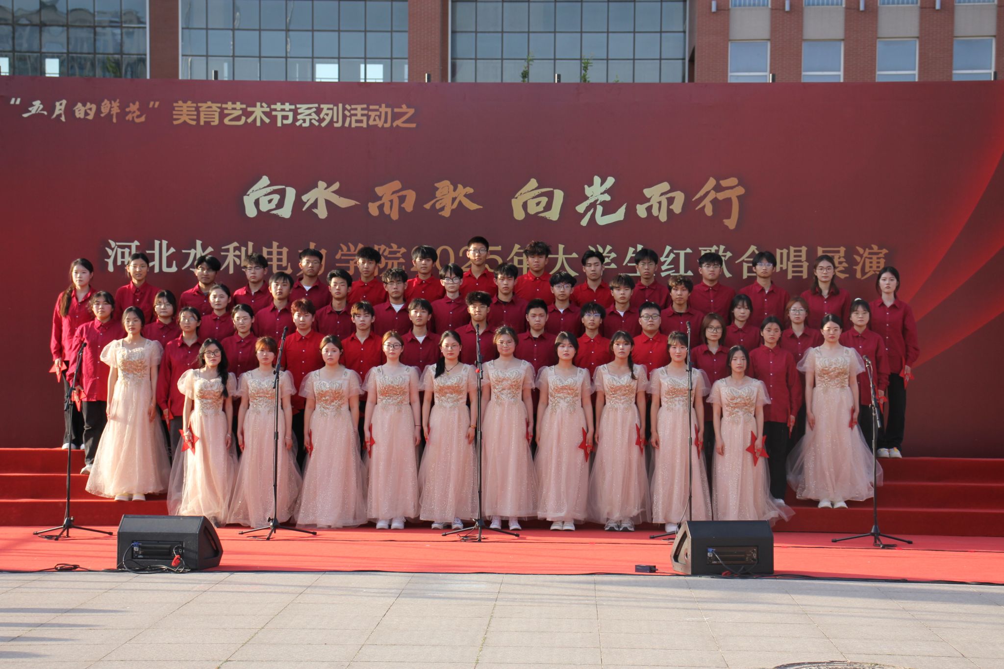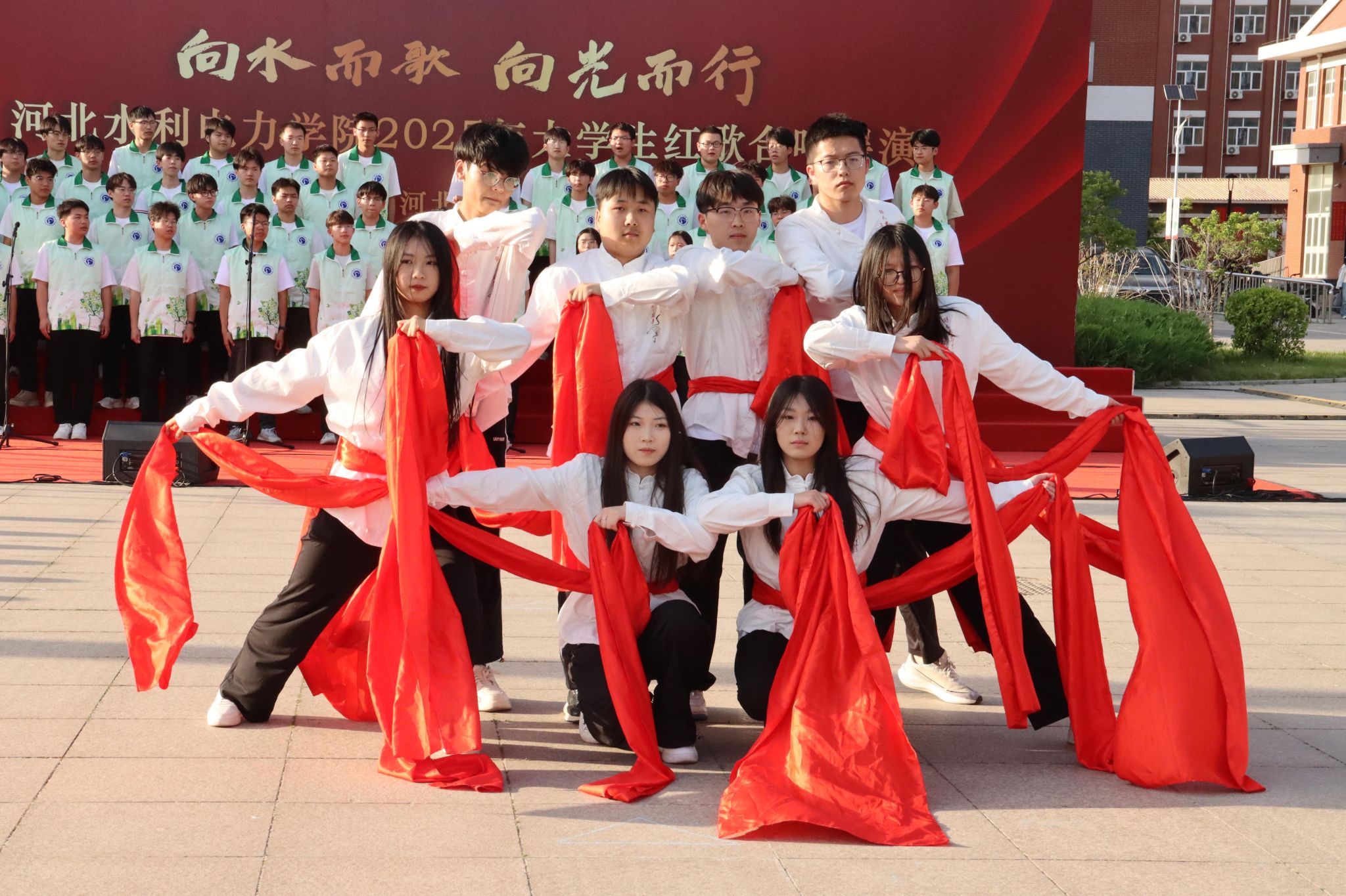 本次红歌展演活动由八系学生分别组成合唱队伍,以红色经典歌曲为载体,通过创新演绎方式,充分展现了我校新时代青年学子昂扬向上的精神风貌和深厚的家国情怀。