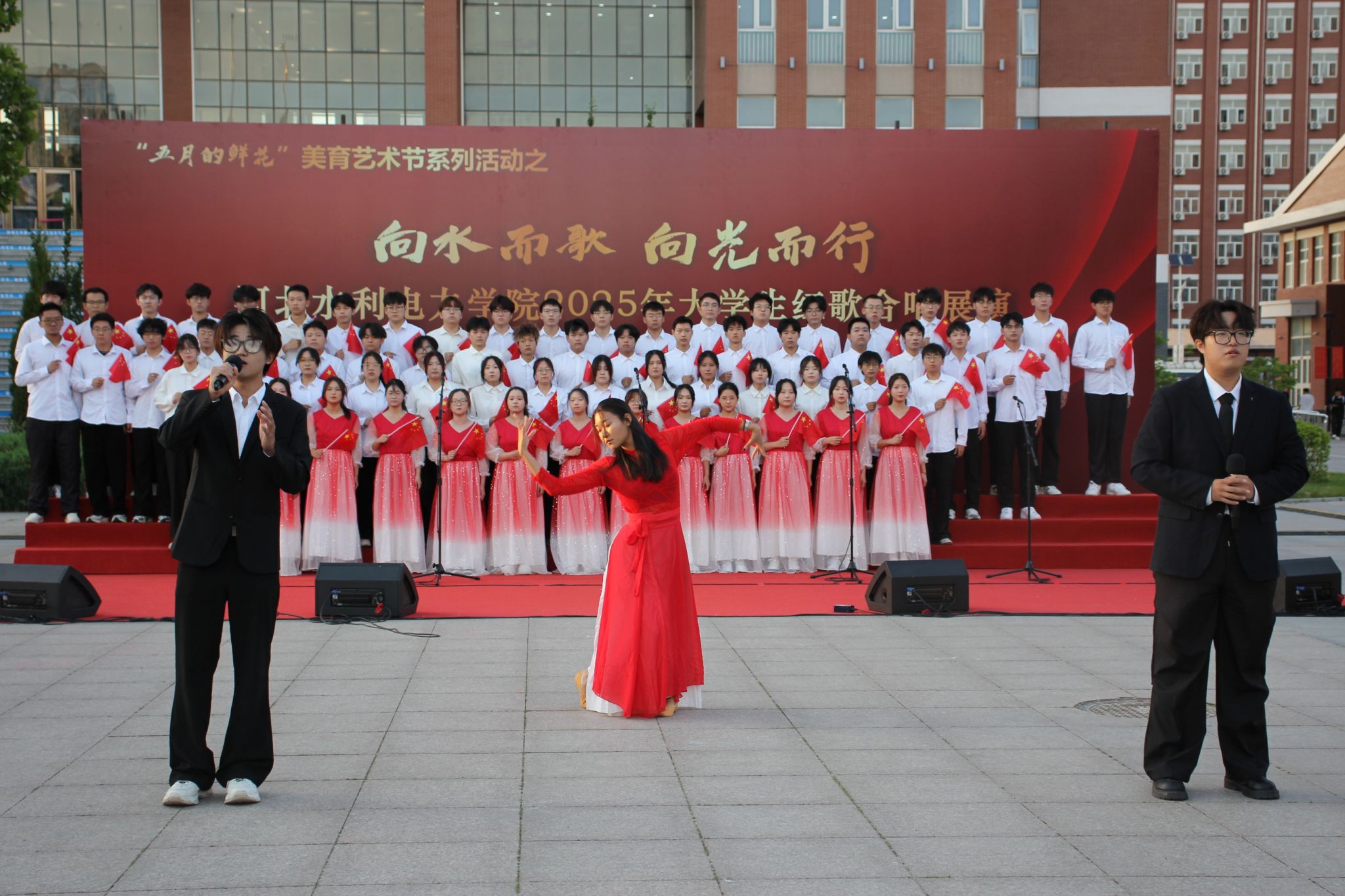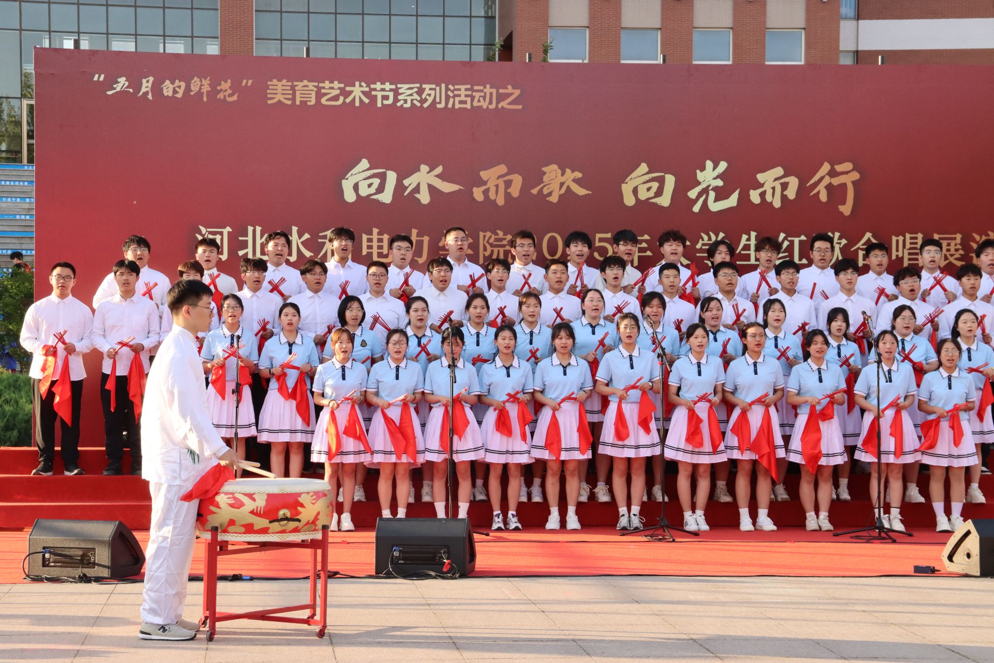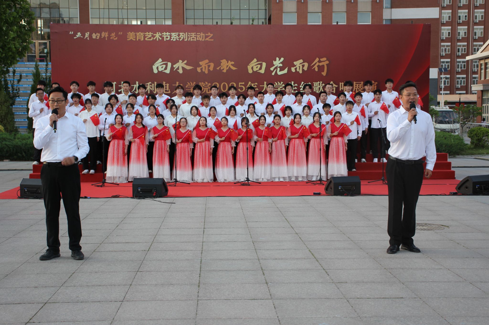 五月的校园,歌声嘹亮。青春的舞台,激情飞扬。5月15日下午,我校石材广场上红旗招展、歌声如潮,“五月的鲜花”美育艺术节系列活动之“向水而歌 向光而行”KYTY.COM开云体育(中国)科技公司2025年大学生红歌展演在此举行。校党委书记张效松,党委副书记、校长王滨,副校长于振海,副校长杨凯,纪委书记鲁增秋出席活动。