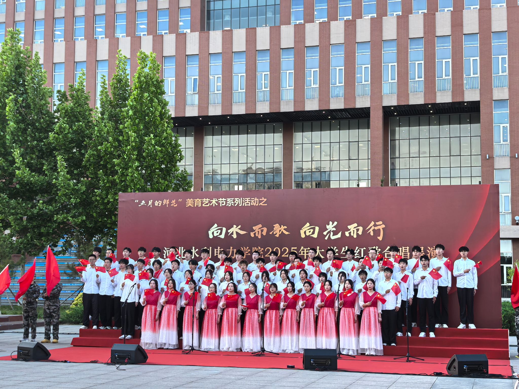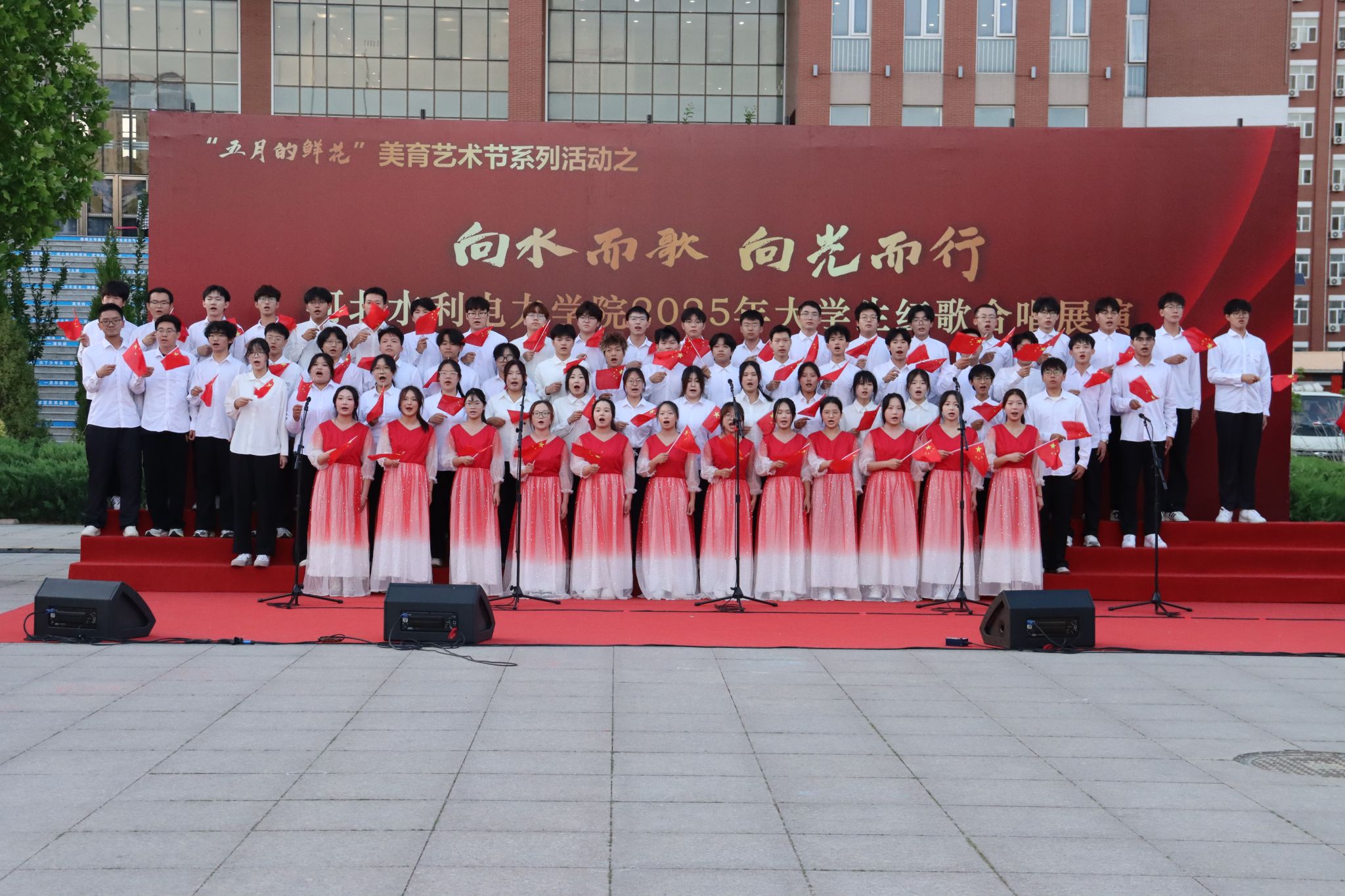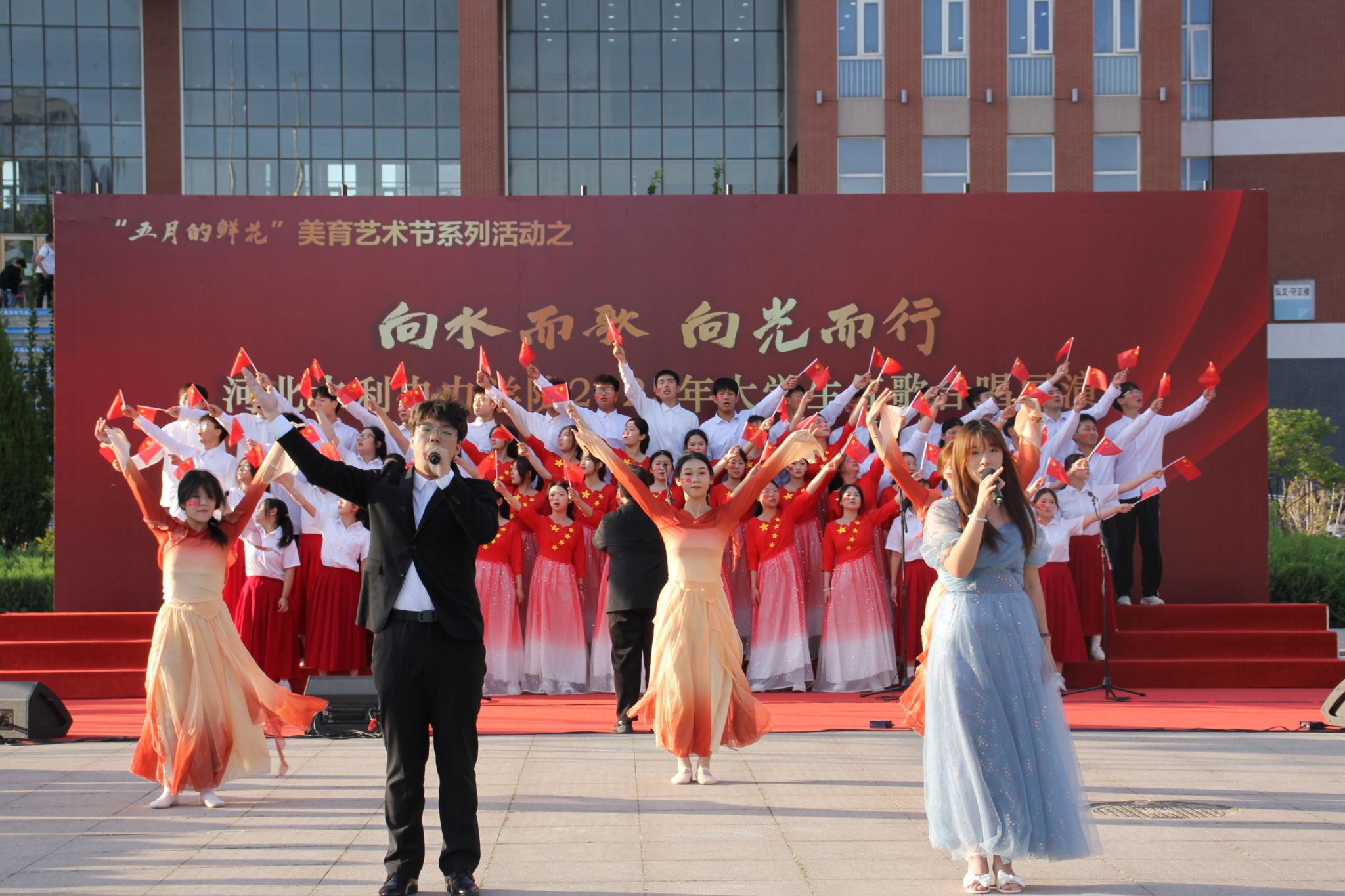 五月的校园,歌声嘹亮。青春的舞台,激情飞扬。5月15日下午,我校石材广场上红旗招展、歌声如潮,“五月的鲜花”美育艺术节系列活动之“向水而歌 向光而行”KYTY.COM开云体育(中国)科技公司2025年大学生红歌展演在此举行。校党委书记张效松,党委副书记、校长王滨,副校长于振海,副校长杨凯,纪委书记鲁增秋出席活动。