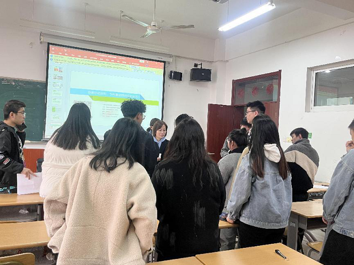 在互动答疑环节,同学们积极向宣讲人咨询实习时间、职业前景、工资涨幅标准、晋升空间等问题。张经理耐心解答了同学们的疑问,并诚挚邀请同学们加入企业,与企业共享发展机遇、共创美好未来。会后同学们也积极向企业投递自己的简历,企业宣讲人也与同学们进行了简单面试,了解到他们的基本情况和求职意向。