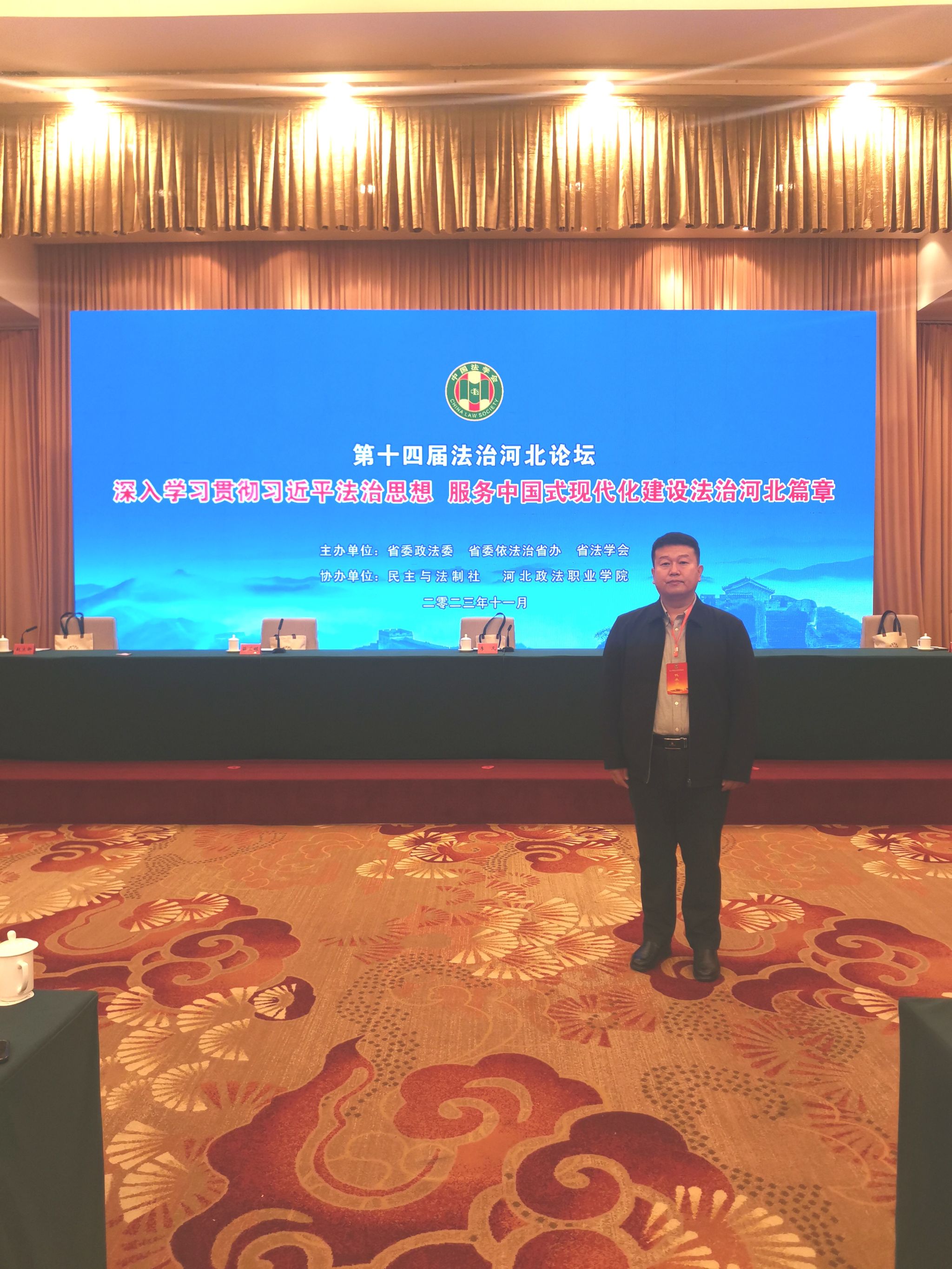11月25日,由中共河北省委政法委、中共河北省委全面依法治省委员会办公室、河北省法学会主办的第十四届法治河北论坛在河北省石家庄召开,本届论坛主题为“深入学习贯彻习近平法治思想,服务中国式现代化建设法治河北篇章”,我校马克思主义学院副教授崔博老师受邀参加论坛交流。
