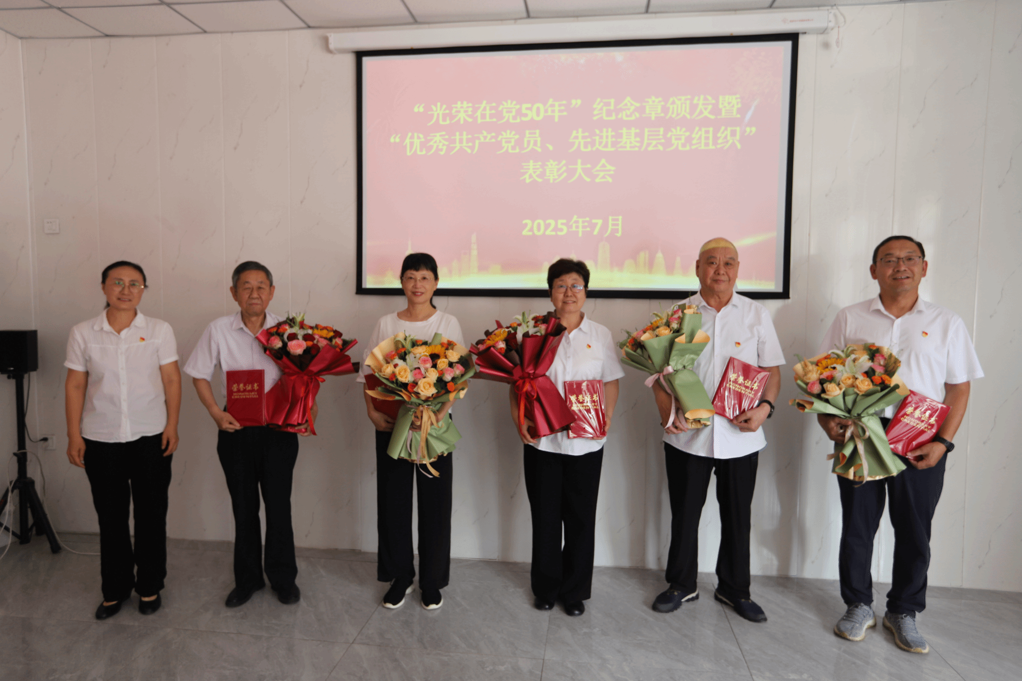 7月1日,离退休党总支在离退休党员活动室举行“光荣在党50年”纪念章颁发暨优秀共产党员、先进基层党组织表彰大会,庆祝中国共产党成立104周年。党委组织部部长王德强、离退休党总支书记杨凤阁出席活动并为受表彰者颁奖。