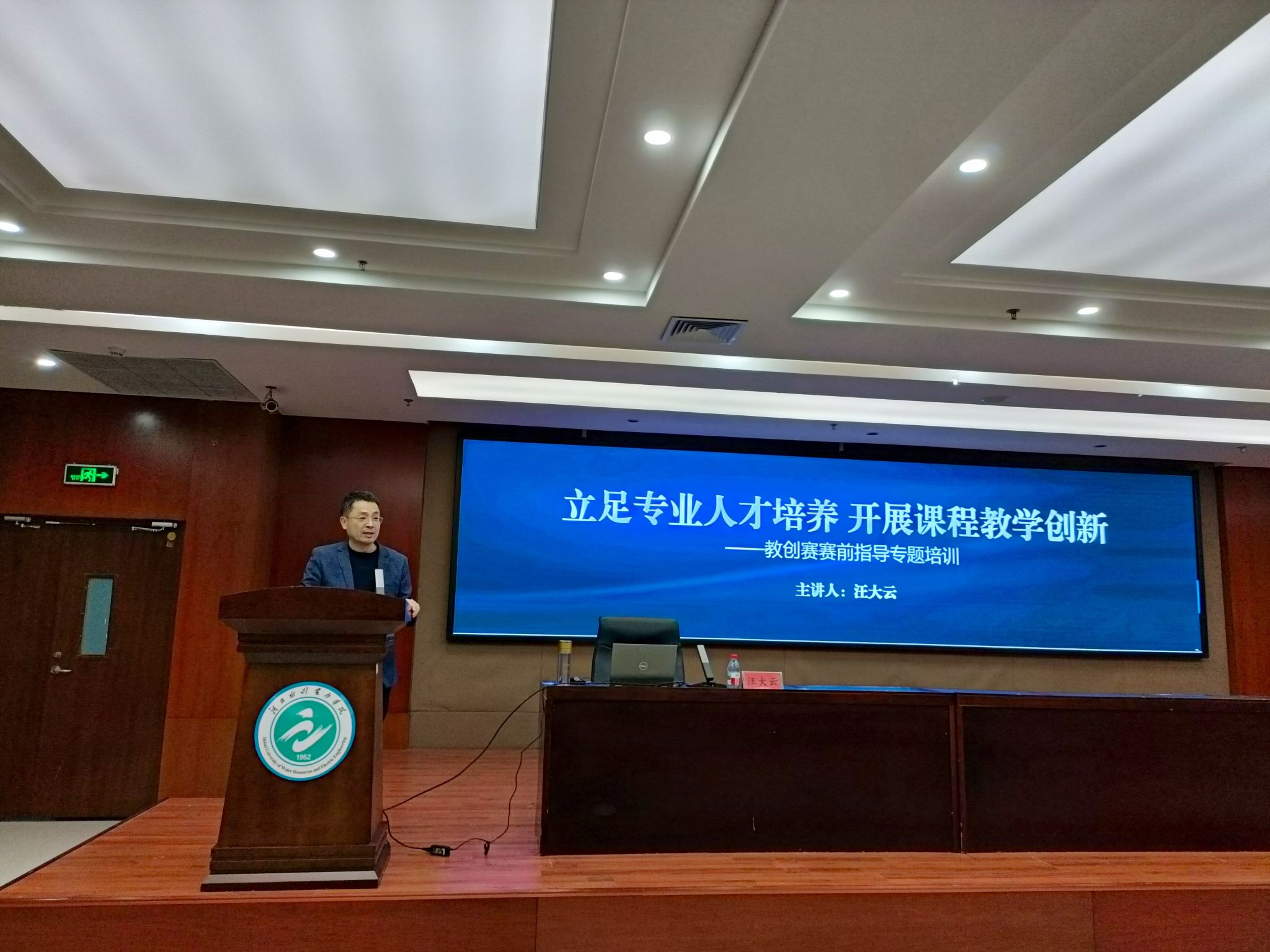 为持续推进课堂教学改革,深入探讨和挖掘教学创新点,提升教师教学创新能力,助力我校教师备战教学创新大赛。11月25日,我校邀请河北工业大学汪大云教授开展教创赛赛前指导专题培训。培训由教师培训中心主任王以明主持,各教学单位备赛教师及部分专任教师参加。